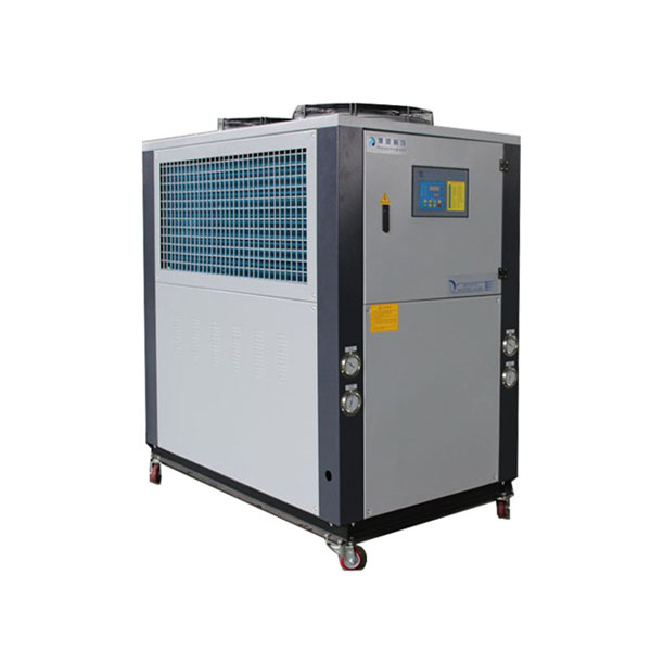首先,我們要弄清楚冷水機分為哪幾種類型: 一般的廠家,都會生產水冷和風冷兩種.風冷冷水機在它機身內含有保溫水箱和水泵,無需再另加冷卻水塔來散熱.安裝和移動非常方便.但是它對工作環境要求較高,首先,因為它是以熱風循環來制冷的,所以,如果安裝車間的通風效果不好的話,會直接影響到冷水機的制冷效果.另外,如果您想把冷水機放在有濕度要求的無塵車間里的話,那么我勸您改裝水冷的.因為風冷冷水機,會在機頂噴出水蒸氣以散熱