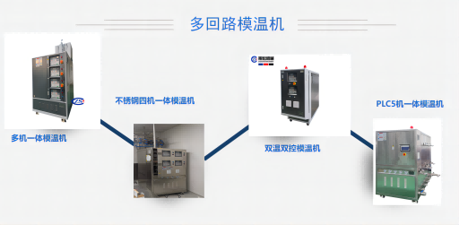 祝松機械的多回路/雙回路油溫機,可替代多臺模溫機,集中管控整體溫度,大大降低客戶的使用成本以及解決設備占地空間大、信息采集不方便等問題,為企業提供溫控技術解決方案。將多個獨立控溫系統集成在一個機組內的定制模溫機設備,主要針對同一設備的多個區域實現不同控制溫度需求的應用場合,常見的應用有擠出機料筒和機頭的分段控溫、壓鑄模具控溫、多個輥輪輥筒的獨立控溫等。根據可控溫區域的數量不同,又分為三機一體模溫機、四機一體模溫機、六機一體模溫機等機型。